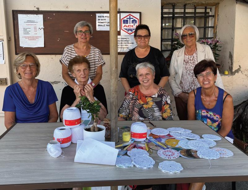 MONASTEROLO – In paese, una volta a settimana, l’appuntamento è con “Le Signore del martedì”, un gruppo di laboriose amiche che con le mani in mano non sa stare. Tra un impegno e l’altro si incontrano tra le 14.30 e le 16.30, per lavorare a maglia, fare uncinetto, chiacchierare, prendere un caffè. Insomma «per uscire un po’ di casa…», come ci dicono loro scherzando. Molto più di un semplice gruppo di conoscenti che si ritrova al bar. Proprio da loro è nato e sta prendendo forma, infatti, il progetto “Fai fiorire il tuo Natale”. Si tratta di un’idea innovativa per decorare il paese nel periodo natalizio. Ma andiamo con ordine, le abbiamo incontrate per conoscerle meglio e per farci raccontare di questo interessante progetto. Da quanto tempo vi trovate? Si scambiano un’occhiata sorridendo, ricordando i tanti lavori realizzati negli anni: «Ci incontriamo da una decina di anni. All’inizio ci trovavamo presso la sede degli alpini, poi nella saletta dell’oratorio. Da qualche anno alterniamo un incontro in bocciofila e uno al bar del Cantun. Siamo “senza Patria” – scherzano riferendosi ai loro frequenti cambi di “sedi” -. Prima eravamo “Le Signore del giovedì”, proprio perché in base ai nostri impegni potevamo trovarci quel giorno».
