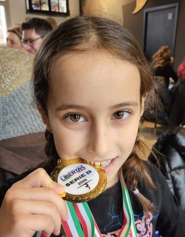 Si prosegue con la serie A dove Alessia Sardo non è da meno e sale anche lei sul gradino più alto. La gara continua con la serie B, dove le piccole Letizia Giordano ed Emma Cavallo del 2016 conquistano oro e argento nella classifica generale, Sofia Gallo l’argento generale delle 2014: oro e menzione di eccellenza per le parallele di Arianna Oitana.